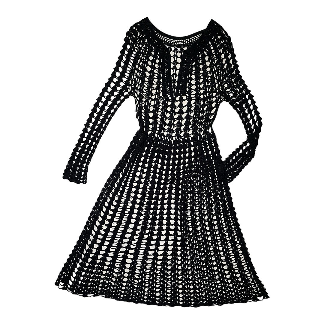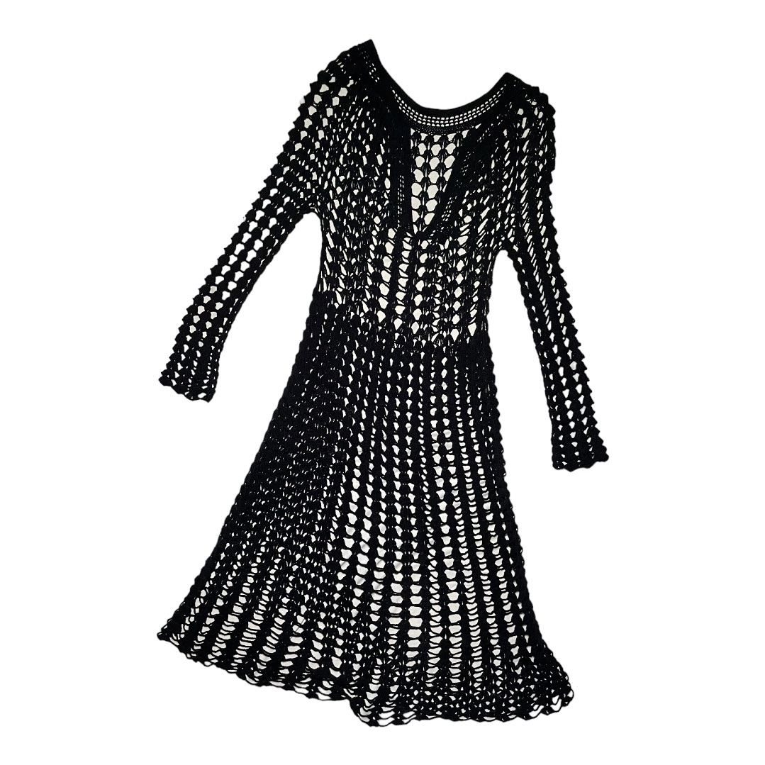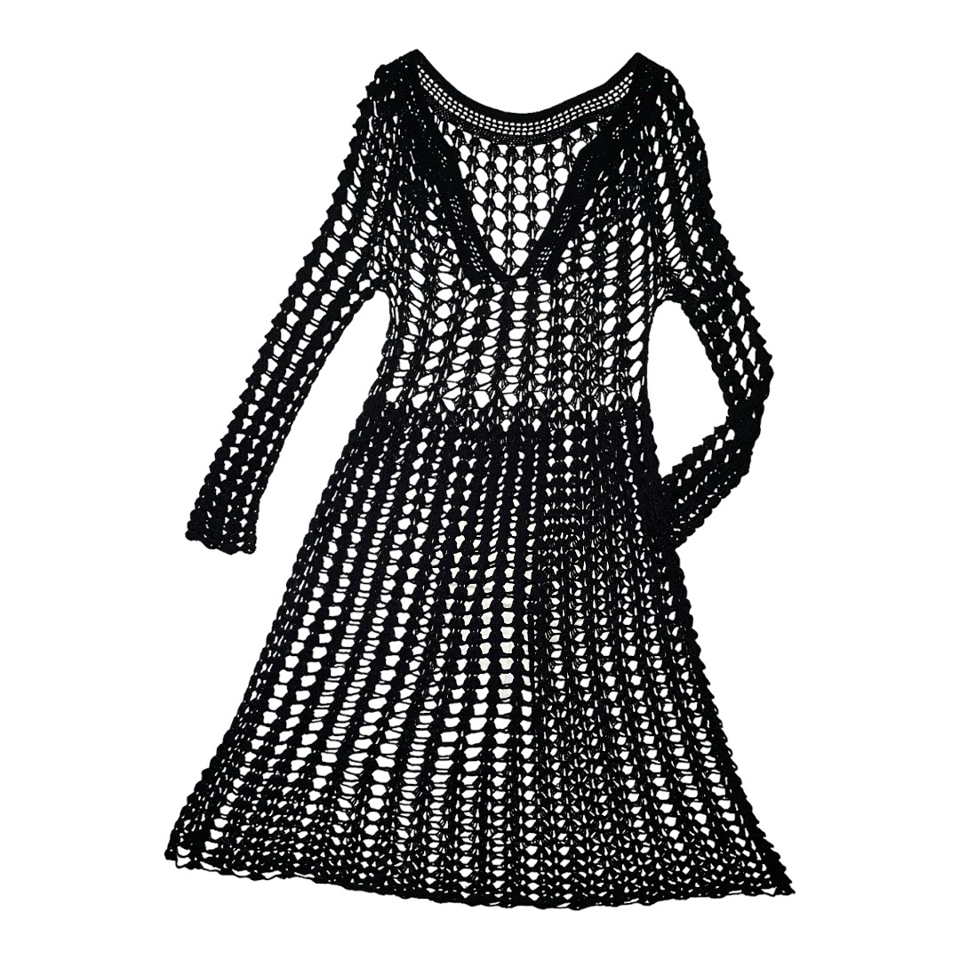 DETAILS: Timeless vintage black crochet dress that exudes sophistication while embracing the free-spirited vibe of crochet craftsmanship. Perfect for those who appreciate the artistry of yesteryears, it’s a versatile addition to your wardrobe, whether you’re strolling through a summer festival or club night out.